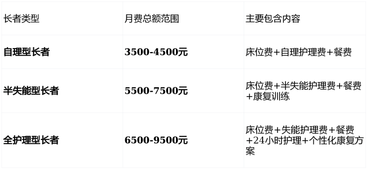 根据长者不同身体状况,2026年月费总额参考范围如下: