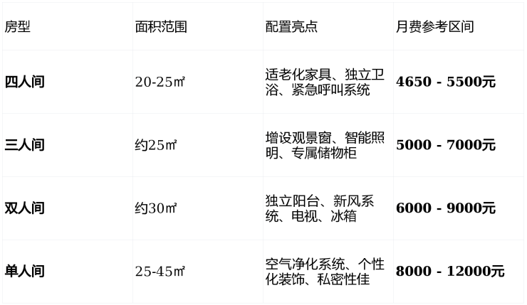 收费标准:4650-19035元/月(根据护理等级和房型动态调整)