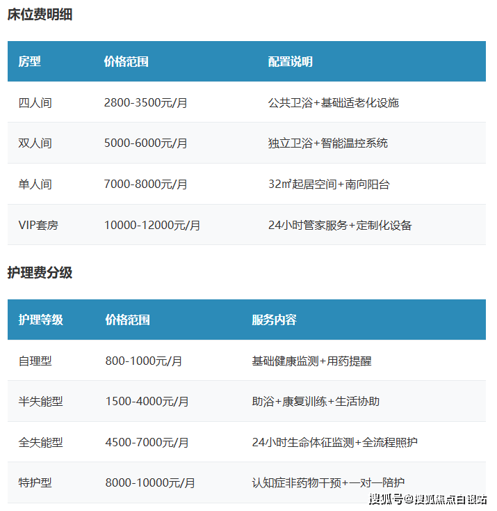 • 护理型床位:6000-8000元/月(含基础护理服务)