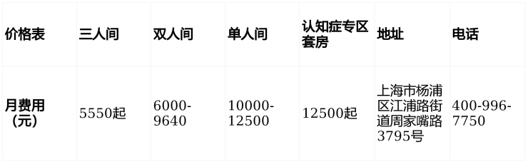 三人间:5550元/月起(含床位、基础照护、公共设施);