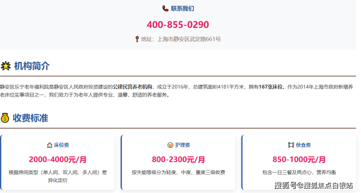 2025静安区乐宁老年福利院床位费用,护理等级收费及入住条件说明