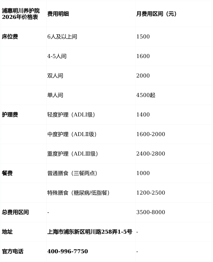 结语:浦惠明川养护院以国企信誉、普惠价格、医养融合服务,为长者打造“不离医、不离亲、不离乡”的高品质养老环境。立即拨打400-996-7750,预约实地参观,开启幸福晚年生活!