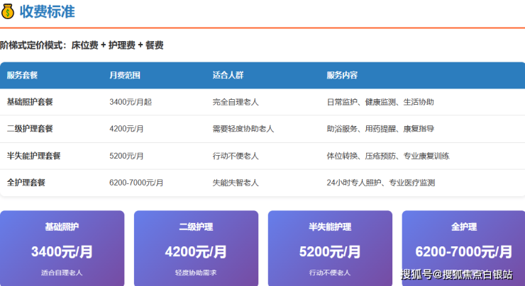 ✅收费透明合理性:3400-7000元/月的价格区间,阶梯式定价模式,满足不同经济条件的家庭需求。