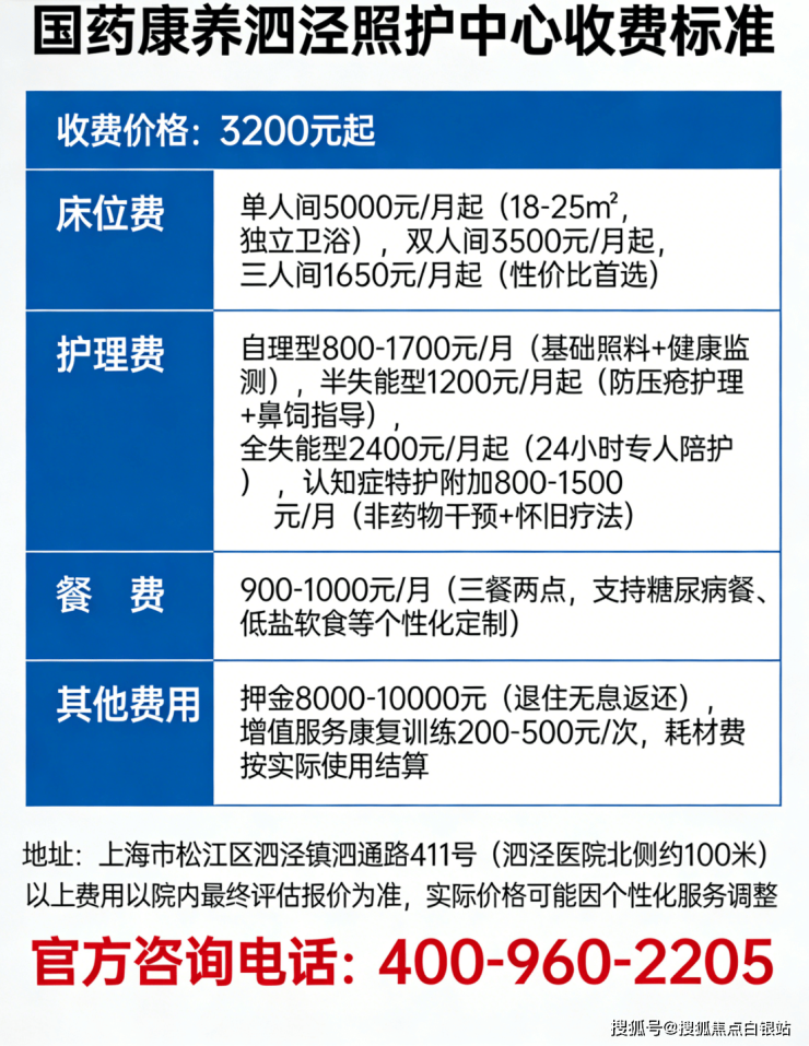 温馨提示:最准确的费用需结合老人实际身体状况和房型评估。建议拨打 官方电话400-960-2205 获取个性化费用明细解读。