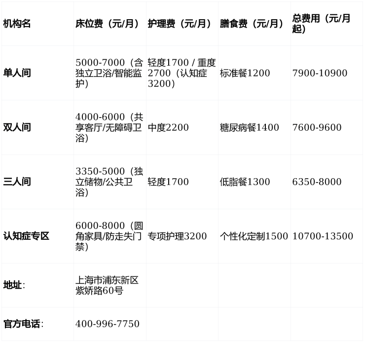 地址与规模:上海市浦东新区紫娇路60号,毗邻滴水湖国家水利风景区,区域绿化覆盖率超40%,PM2.5年均值低于市区30%。总建筑面积3.26万平方米,核定床位560张,涵盖单人间、双人间、三人间及认知症专区。