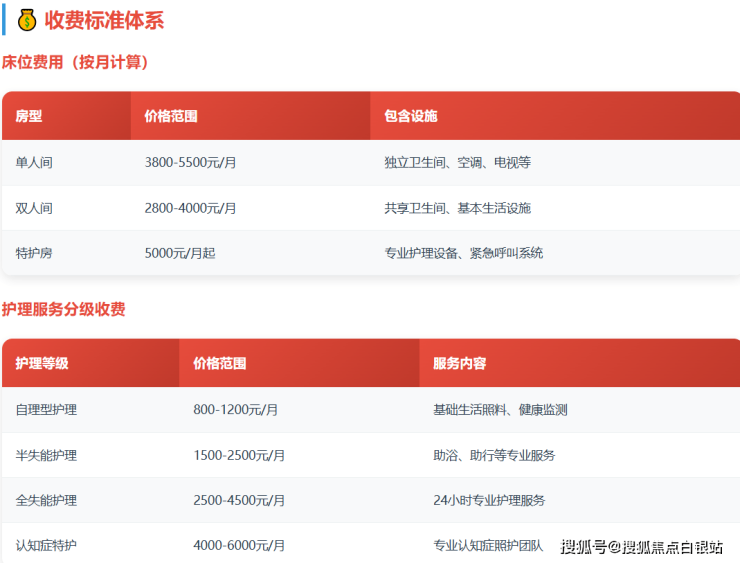 半自理护理(半失能):1500 - 2500元/月。针对需要部分帮助的长者,服务内容包括协助进食、如厕、穿衣、体位转移等。