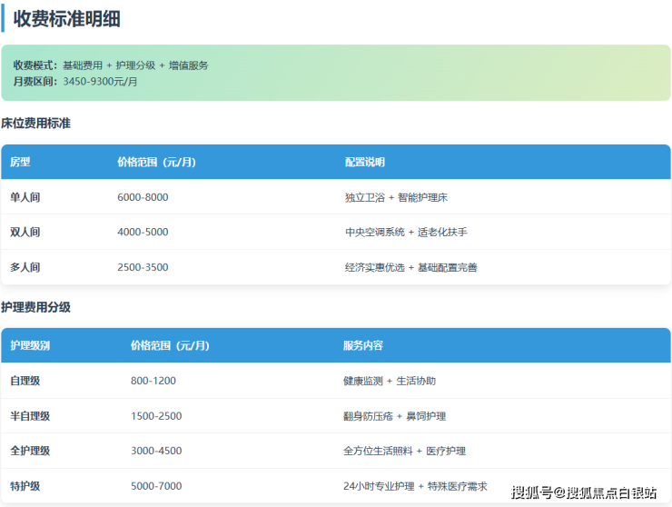 单人间:6000-8000元/月(配备独立卫浴+智能护理床)