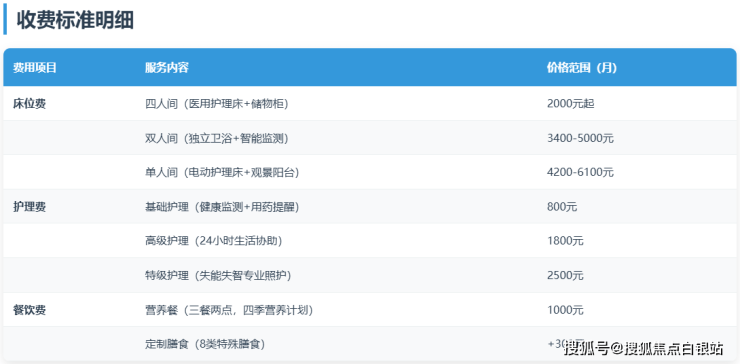 双人间(约28㎡):月度总费用区间约为3400 - 5000元。房间通常配备医用级防滑地板、双床头呼叫装置等适老化设施。