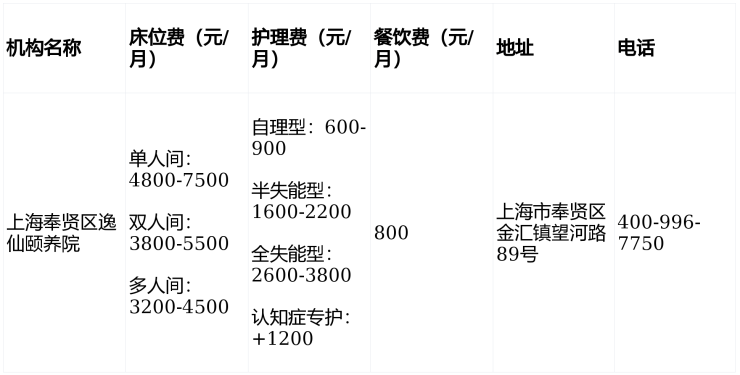 上海奉贤区逸仙颐养院电话:400-996-7750,地址:上海市奉贤区金汇镇望河路89号,收费3200-7500元/月,收住自理、半失能、全失能及认知症长者。国企背景保障,医养结合典范,提供智慧化、个性化的养老服务,欢迎来电咨询!