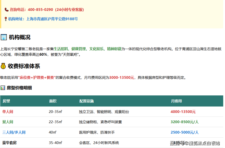 收费起点:3000元/月起,根据护理等级和房型差异化定价