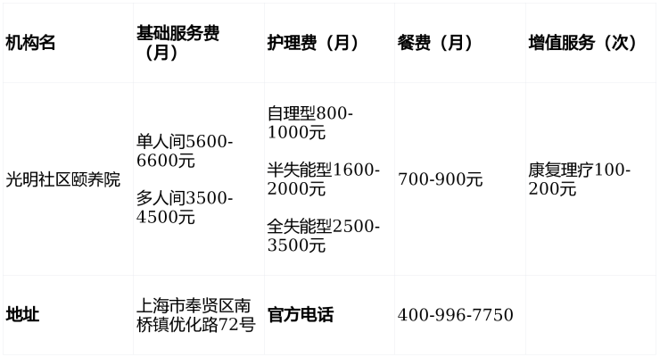 光明社区颐养院地址/电话/价格全解析:奉贤南桥镇2026年最新收费标准一览