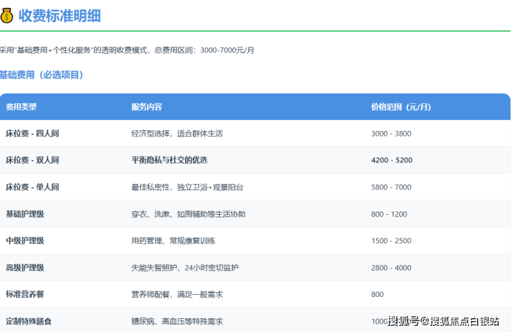 重要提示:所有费用通过电子屏每日公示,无任何隐形消费。具体费用根据长者实际选择的房型与护理等级确定,详情可拨打400-855-0290获取个性化报价。