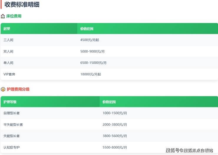 万里臻华颐养院采用"床位费+护理费+餐费"的透明收费模式: