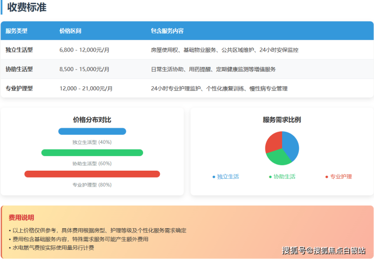 1. 基础月费(根据居住模式与护理需求分级)