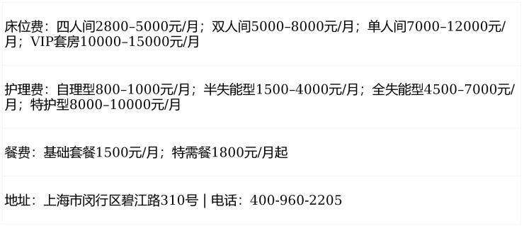 温馨提示:最准确的费用需结合老人实际身体状况和房型评估。建议拨打官方电话 400-960-2205 获取个性化费用明细解读。