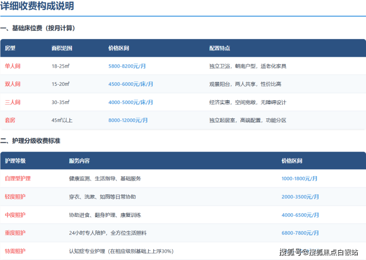 二、收费透明,性价比高:从4870元/月起的普惠价格到高端套房服务,满足不同预算需求,费用构成清晰明了。