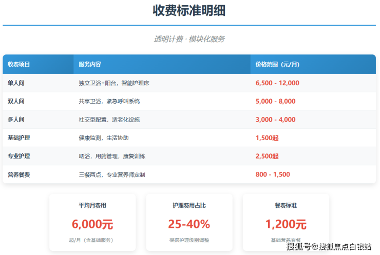 衡山人寿堂养护院采用模块化收费模式,具体费用根据长者身体状况、护理级别和房型选择而定: