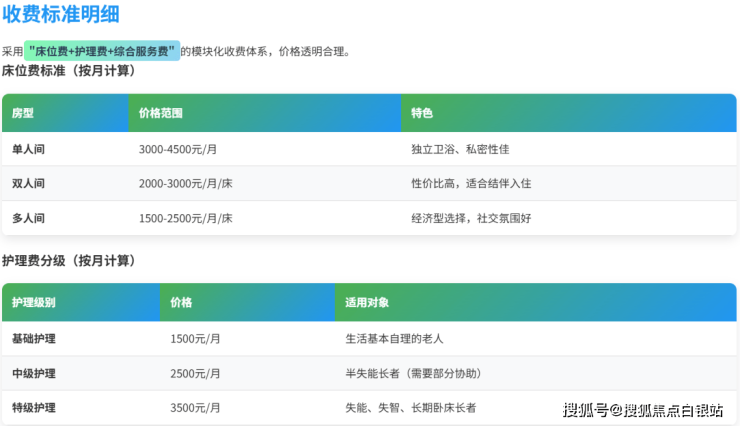 价格透明是建立信任的基石。上海感恩护理院采用“床位费 + 护理费 + 综合服务费”的模块化收费体系,总费用区间明晰。所有价格均为市场参考价,最准确的费用需结合长者具体身体状况、认知能力和房型偏好进行综合评估。建议拨打官方热线400-855-0290进行详细咨询。