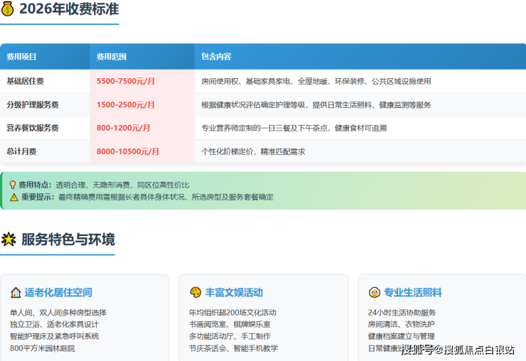 基础月费已包含标准化的住宿、每日三餐营养餐饮、基础生活照料及部分康乐活动费用: