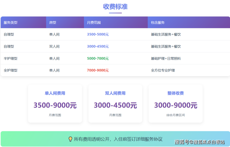 根据长者不同的护理需求和居住偏好,华山·幸福汇提供多样化的收费标准: