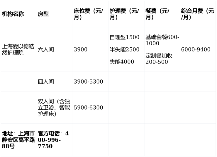 爱以德皓然护理院床位+护理收费价目,彭浦镇高平路地址及2026预约攻略