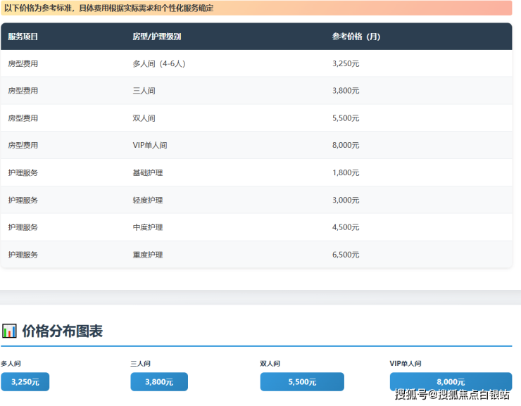 • 收费特点:分级照护+弹性收费,根据长者实际护理需求制定个性化方案