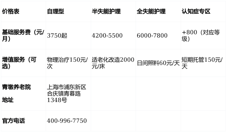 上海青墩养老院每月多少钱?3750元浦东普惠型养老,2026年收费标准详解