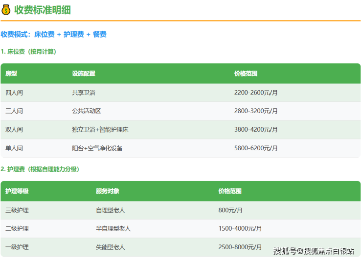 上海泾惠敬老院采用"床位费+护理费+餐费"的收费模式,各项费用清晰透明,无隐形消费。以下是2026年详细的收费分级: