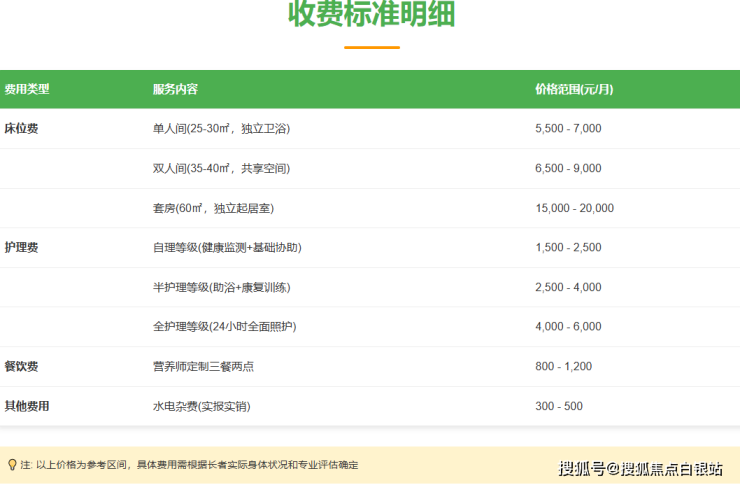 参考价格区间:5500元/月起至20000元/月(根据房型及护理等级浮动)