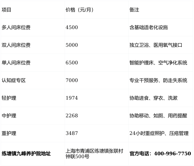 练塘镇九峰养护院2026全解析:入住青浦最新电话,地址价格一次性说清楚