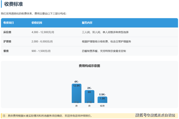 • 尊享套餐:8000元/月,提供VIP单人间、24小时专人照护、定制化健康管理
