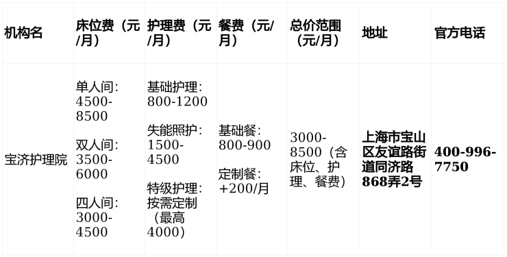 宝济护理院2026服务全解析:宝山同济路旁地址,收费价格3000元起!