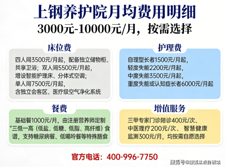 二、上钢养护院2026官方收费标准5000元起,具体构成含