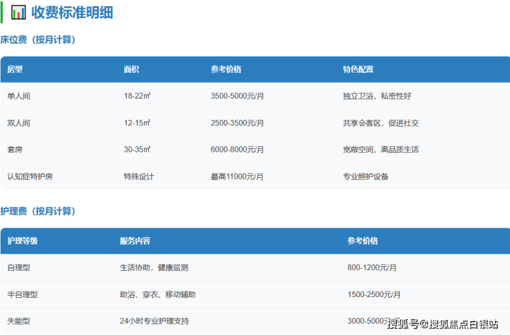 认知症特护房:根据特殊照护需求与环境设计,费用可能达到区间上限。