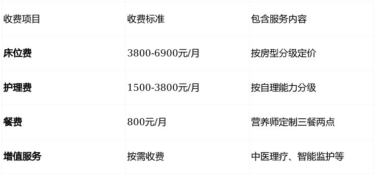 上海金色怡福护理院采用月费制收费模式,价格区间为3800-6900元/月,具体费用根据长者护理等级和房型选择动态调整。