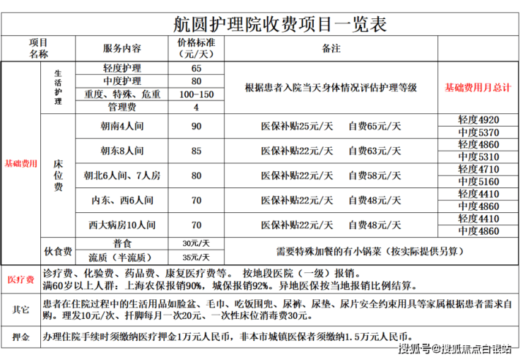 清晰、透明的收费结构是建立信任的基础。上海航圆护理院普遍采用“床位费 + 护理费 + 餐费 + 基础服务费”的模块化计费模式,各项费用独立核算,杜绝隐形消费。