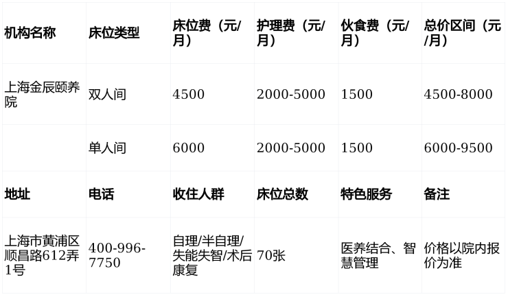 黄浦区国企养老院!2026金辰颐养院地址3月收费标准,附入住预约电话