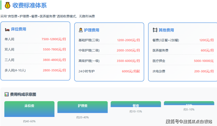 标准营养餐:约30-40元/天,提供一日三餐,由专业厨师和营养师搭配,确保膳食均衡。