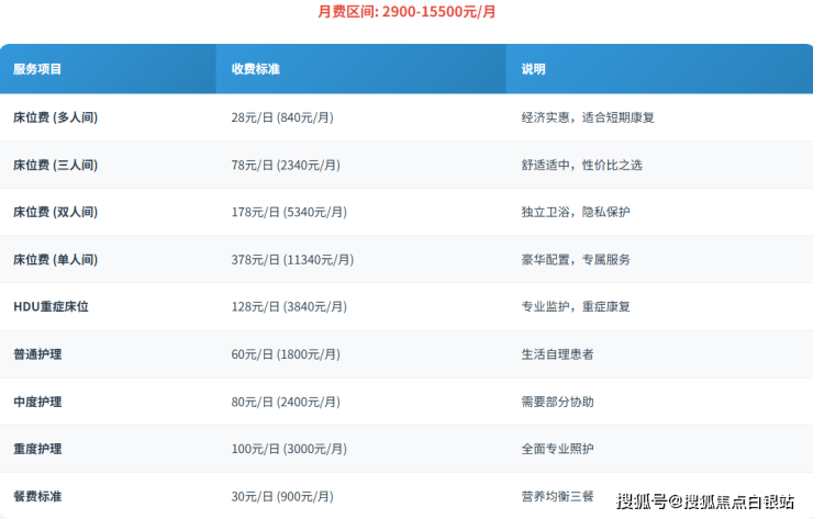 上海银美嘉宜医院采用透明分层收费模式,月均总费用区间为2900-15500元,具体构成如下: