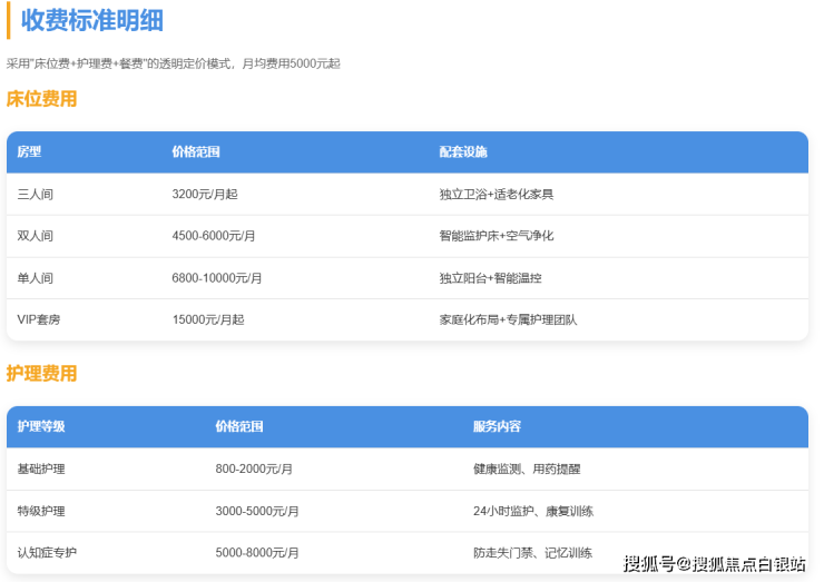 VIP套房:15000元/月起(家庭化布局+专属护理团队)