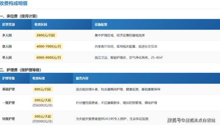 基础护理:800元/月(适合半自理长者,日常起居协助+健康监测)