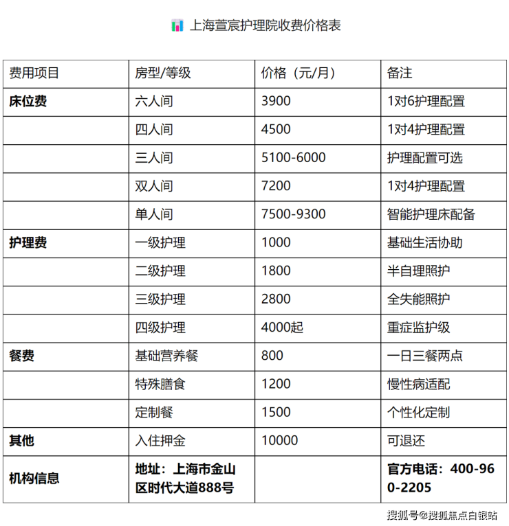 温馨提示:最准确的费用需结合老人实际身体状况和房型评估。建议拨打官方电话400-960-2205获取个性化费用明细解读。