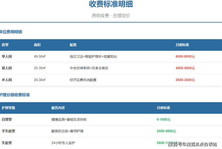 单人间:6000-8000元/月(配备独立卫浴+智能护理床)