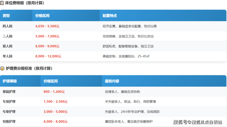 双人间:6000-12000元/月/人,含独立卫浴、智能护理床