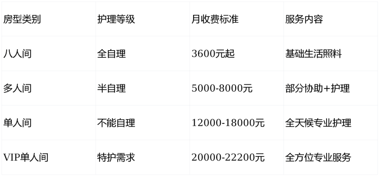 💰价格区间:3600元/月起至22200元/月(按房型及护理需求分级)