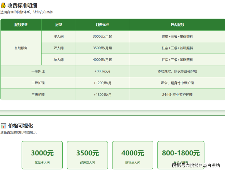 大新敬老院采用**"基础费用+护理包"**的收费模式,确保价格透明合理: