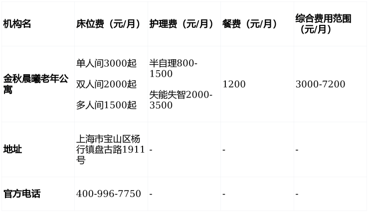 金秋晨曦老年公寓3月收费标准亮相!宝山1350床入住(医养)地址|价格