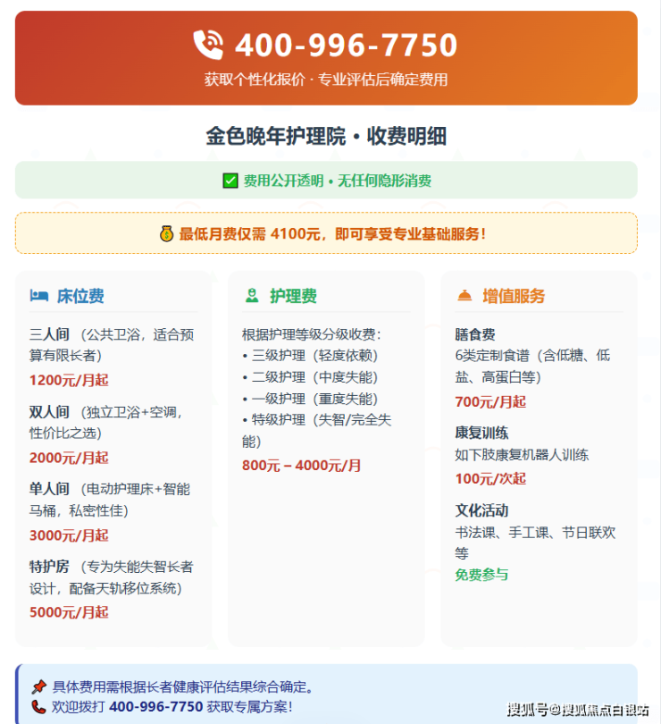 💰基础套餐:4100元/月起(含床位费+基础护理+三餐两点心)