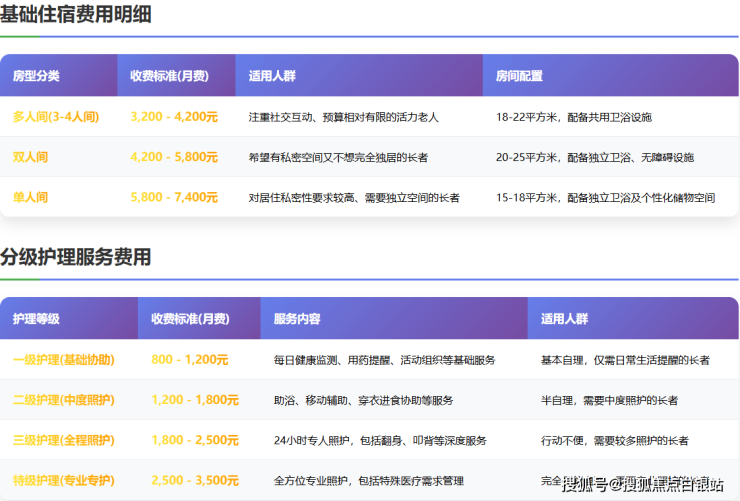 收费区间:月费3000元起,根据房型与护理等级差异化定价
