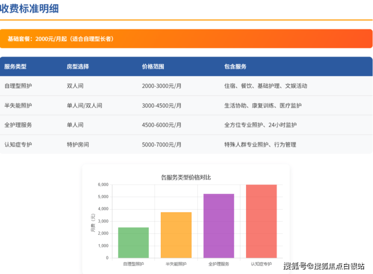 基础价格:2000元/月起(根据房型和护理等级分级定价)